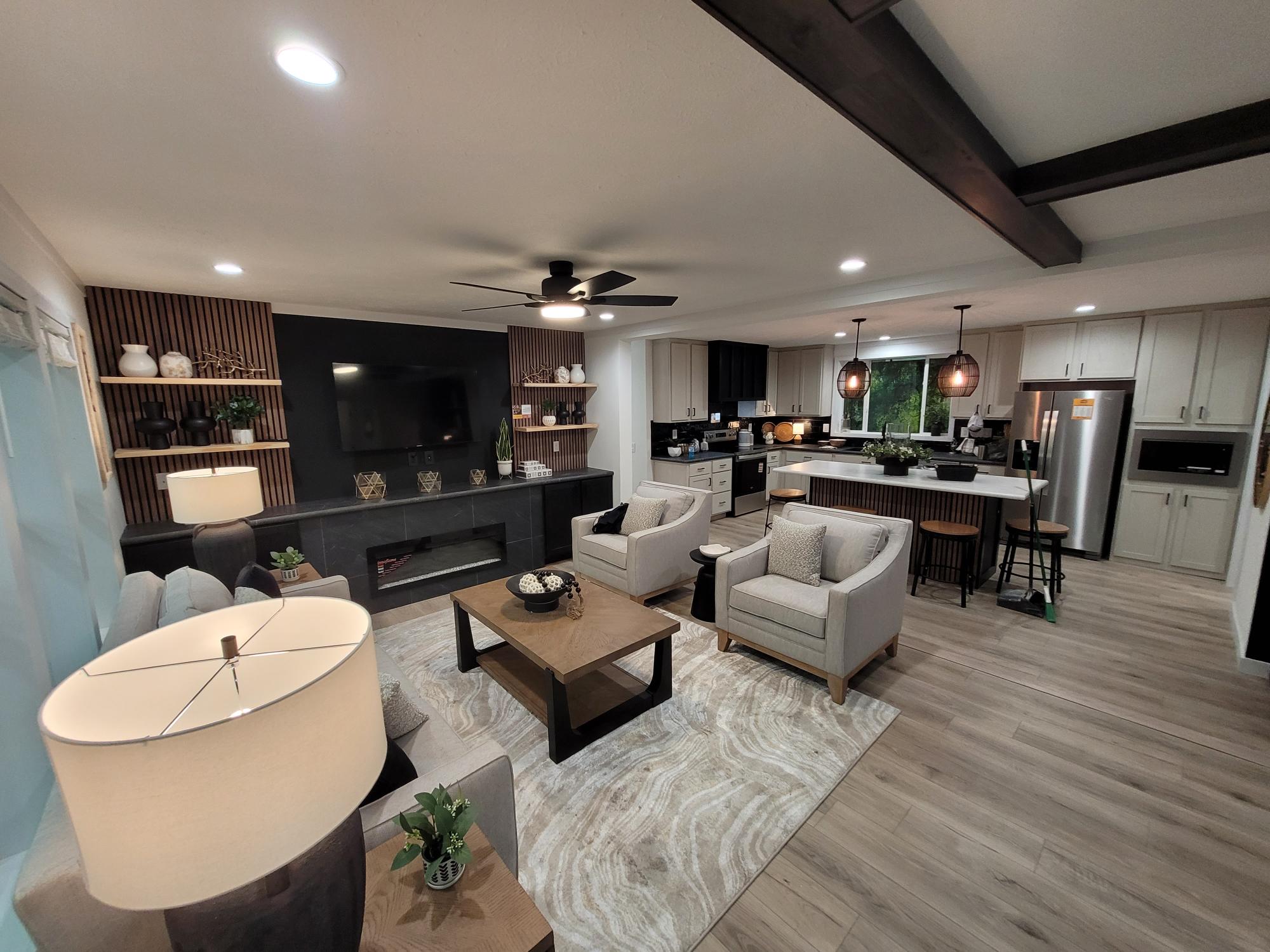 Ultra Modern Home that has a Trendy Interior Design. This Open Concept home along w/Exterior Saddle Roof style creates this AMAZING Stick Built Appearance in built to IRC Code also known as Modular and qualifies for all Lending programs.
